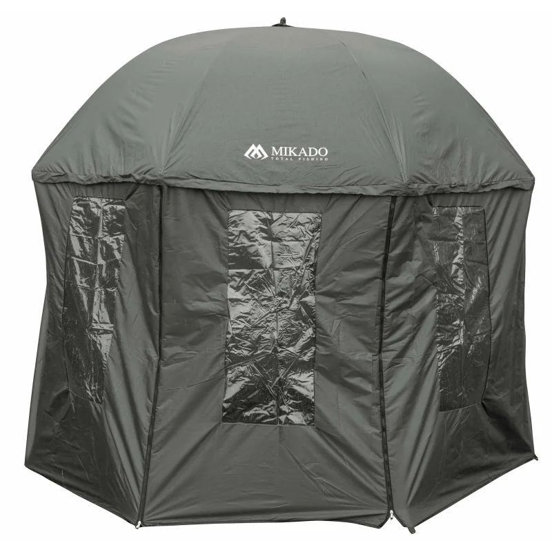 Parasol wędkarski z boczną osłoną 360 - 3m to duży parasol o średnicy aż 300cm mierząc wzdłuż czaszy. Wyposażony w przypinane na suwak ścianki 360 stopni, naostrzoną sztycę, regulację nachylenia, pokrowiec oraz szpilki. Idealne schronienie od deszczu czy słońca.