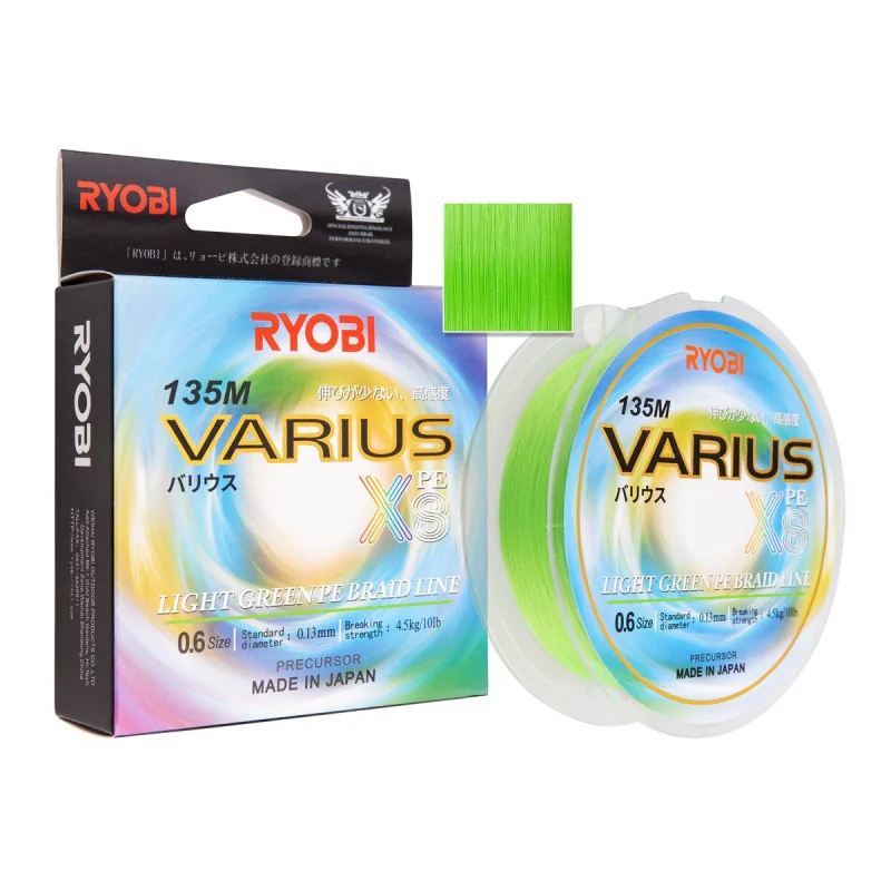Plecionka Varius 8x to 8-splotowe japońskie plecionki wyprodukowane dla Ryobi przez cenionego na całym świecie producenta plecionek SunLine. Plecionki Ryobi Varius 8X gwarantują doskonałe właściwości rzutowe oraz dużą odporność na przetarcia.