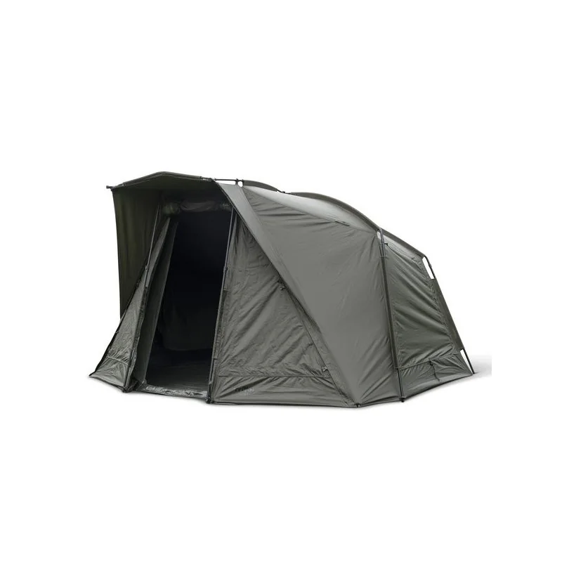 Namiot karpiowy Titan T2 Pro o powiększonej powierzchni, swobodnie mieszczący dwa szerokie Sleep Systemy, pozostawiając jednocześnie miejsce na szafkę Bank Life Bedside Station ustawioną między łóżkami oraz wystarczająco dużo miejsca, aby długie zasiadki były tak wygodne, jak to tylko możliwe podczas wspólnego łowienia.