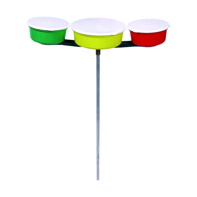 Komplet pojemników na przynęty, wersja potrójna bez sztycy. Pojemniki bardzo obszerne. Średnica każdego z nich to 14 cm.