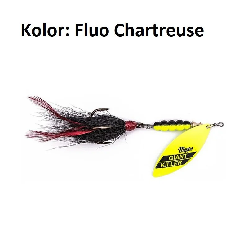 Błystka Giant Killer to kolejna błystka wykonana na szczupaki – potężna paletka Aglia Long nr 5 i kotwica z wielką muchą z sierści wzbogaconą o pióra szyjne koguta, które nadają dodatkowy ruch wabiący. Wabik na wody stojące, głównie na jeziora sielawowe, na skraj głębokich uskoków dna oraz do polowania na szczupaki w toni. Raczej do standardowego spinningu, jeśli trolling, to niezbyt szybki i z downriggerem utrzymującym błystkę na zaplanowanej głębokości.