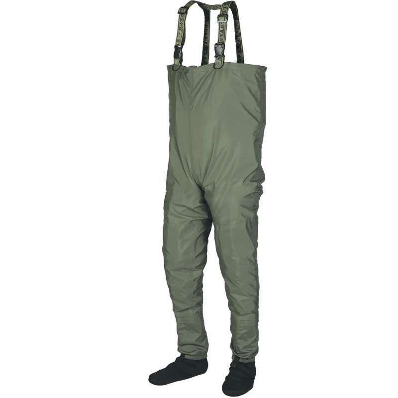 Śpiochy Adventure stanowią połączenie dwóch najważniejszych zalet: wodoodporności i oddychalności. Tkanina, z której są wykonane jest bardzo elastyczna i wytrzymała. Stwarza poczucie przyjemnego chłodu latem oraz zapewnia ochronę termiczną zimą. Neoprenowe skarpety chronią stopy przed otarciami i zimnem. W dolnej części nogawek znajdują się zaczepy, łączące śpiochy z butami. Regulowane, elastyczne, szerokie szelki i zamykana kieszeń wewnętrzna, dopełniają całości.