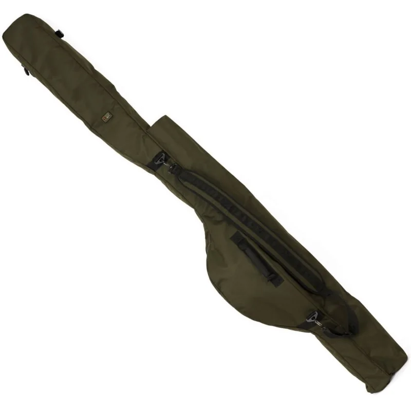 Pokrowiec na wędki R-Series 12ft Tri-Sleeve Fox mieści trzy wędki o długości 12 stóp z kołowrotkami. Zaprojektowane, aby pasować do wędzisk z przelotkami 50 mm i kołowrotków z bitami. Wykonany z nowego, wytrzymałego i wodoodpornego materiału poliestrowego 400 denierów.