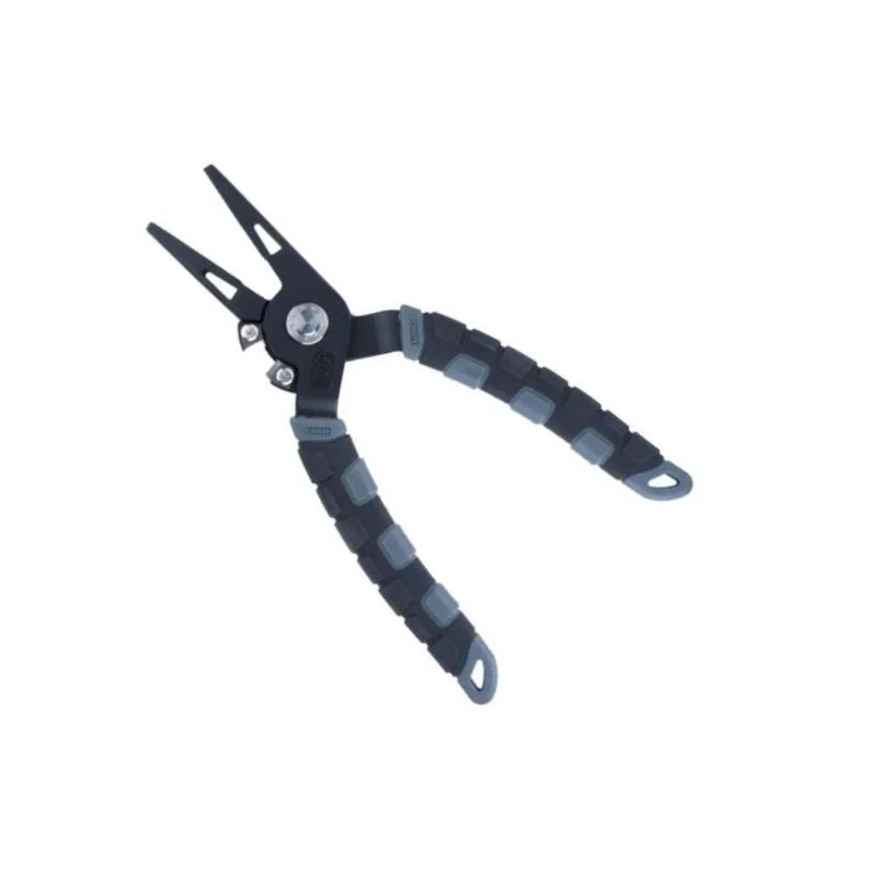 Szczypce Bull Nose Pliers 8" wykonane ze stali nierdzewnej pokrytej czarnym niklem i tytanem zapewniają wytrzymałość, twardość i odporność na korozję. Wyposażone w wymienne ostrza do żyłek i plecionek oraz otwory do zaciskania węzłów. Ergonomiczne uchwyty nie pozwalają na ześliźnięcie się palców.