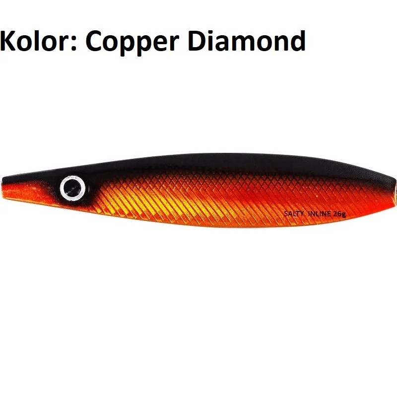 Przynęta Salty Inline jest wzorowana na bestsellerowej przynęcie Salty, wersja Inline posiada wszystkie niezbędne cechy zapewniające dalekie rzuty nawet w czasie najsilniejszego wiatru, pozwalając na poprowadzenie jej zarówno bardzo szybko, jaki i niezwykle wolno. Dzięki temu Salty Inline może być używany zarówno na płytkich, jak i głębokich wodach, a jego praca będzie kusiła do ataku trocie i labraksy o każdej porze roku. Salty Inline wyglądem oraz pracą naśladuje liczne ryby znajdujące się w menu troci i labraksa, a system inline zapewnia znacznie lepszy współczynnik zacięcia.