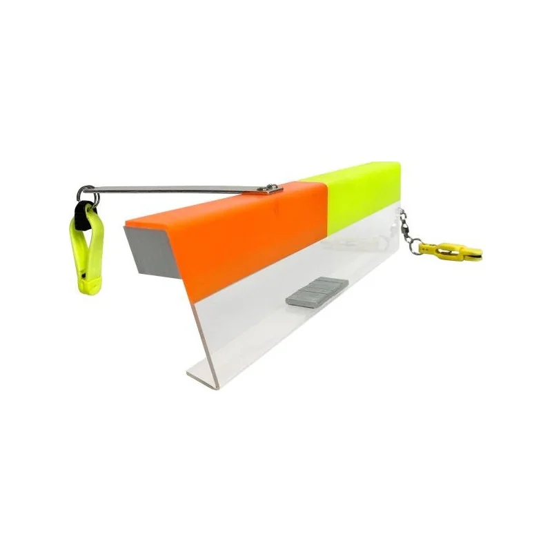 Flexiboard Pair Right , Left Orange/Yellow to najnowsza deska inline firmy Rhino – Flexiboard. Deska konsekwentnie utrzymuje przynętę trollingową na boku w żądanej odległości od łodzi podczas trollingu. Flexiboard to najwyższej klasy deska na złą pogodę, która z łatwością pokonuje nawet duże fale i przez cały czas pozostaje stabilna na powierzchni. Toleruje również duże parawany nad przynętą i ewentualnie flashery nad przynętą. Flexiboard oferuje jeszcze więcej praktycznych korzyści: Po pierwsze, zintegrowane, oryginalne klipsy Scotty świetnie uwalniają się podczas walki, zmniejszając wodoodporność deski. Plecione liny w wytrzymałym zestawie również trzymają się doskonale. Po zwolnieniu deska pozostaje bezpiecznie przymocowana do żyłki za pomocą tylnego klipsa Rhino z wewnętrznym sworzniem.