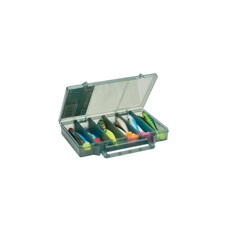 Pudełko Wędkarskie S Line RM-111 w szarej kolorystyce wykonane z trwałego i mocnego polipropylenu. W tym modelu znajduje się 5 ruchomych, podłużnych przegród, które pozwalają podzielić pudełko na 6 komór. Podłużny zatrzask zapewnia wygodne i pewne zamknięcie.