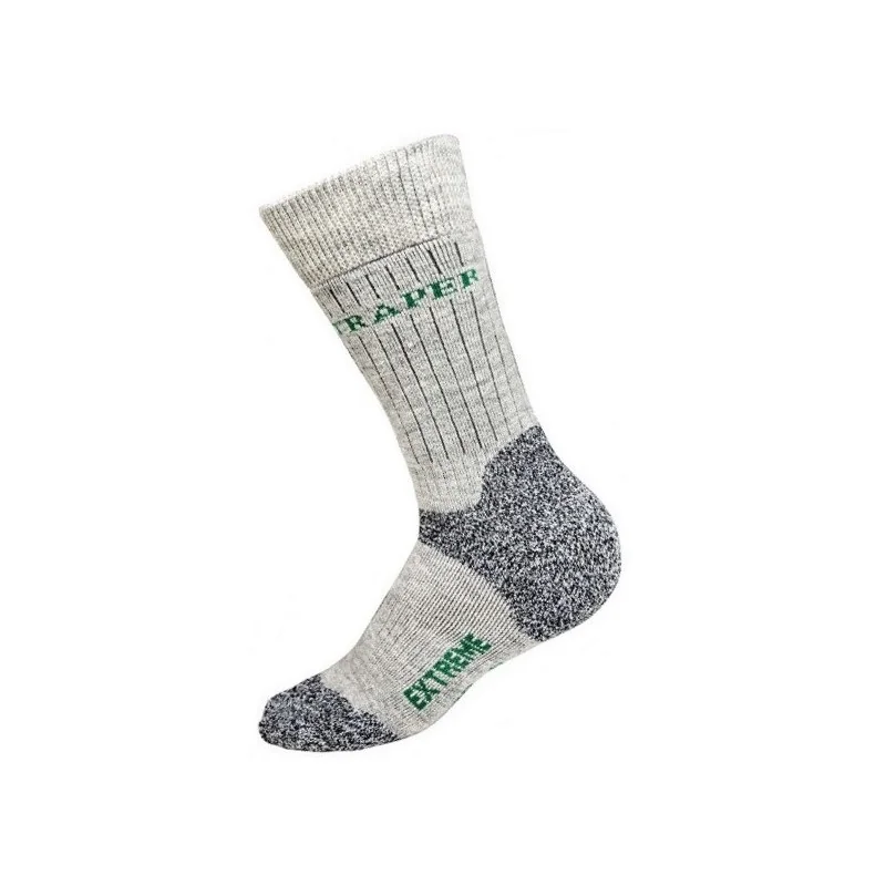 Skarpety Extreme Grey to termoaktywne skarpety co doskonale sprawdzają się w trudnych warunkach. Włókna wełny merynos utrzymują ciepło i nie powodują podrażnień. Poliamid, dzięki specjalnej strukturze włókien, dobrze izoluje termicznie oraz wydajnie odprowadza wilgoć z powierzchni ciała. Dodatek elastanu gwarantuje pewne ułożenie i delikatne przyleganie skarpety, bez nadmiernego ucisku. Strefowa konstrukcja skarpety utrzymuje ją we właściwym miejscu, a wzmocnienia na pięcie i palcach zapewniają długotrwałe użytkowanie.