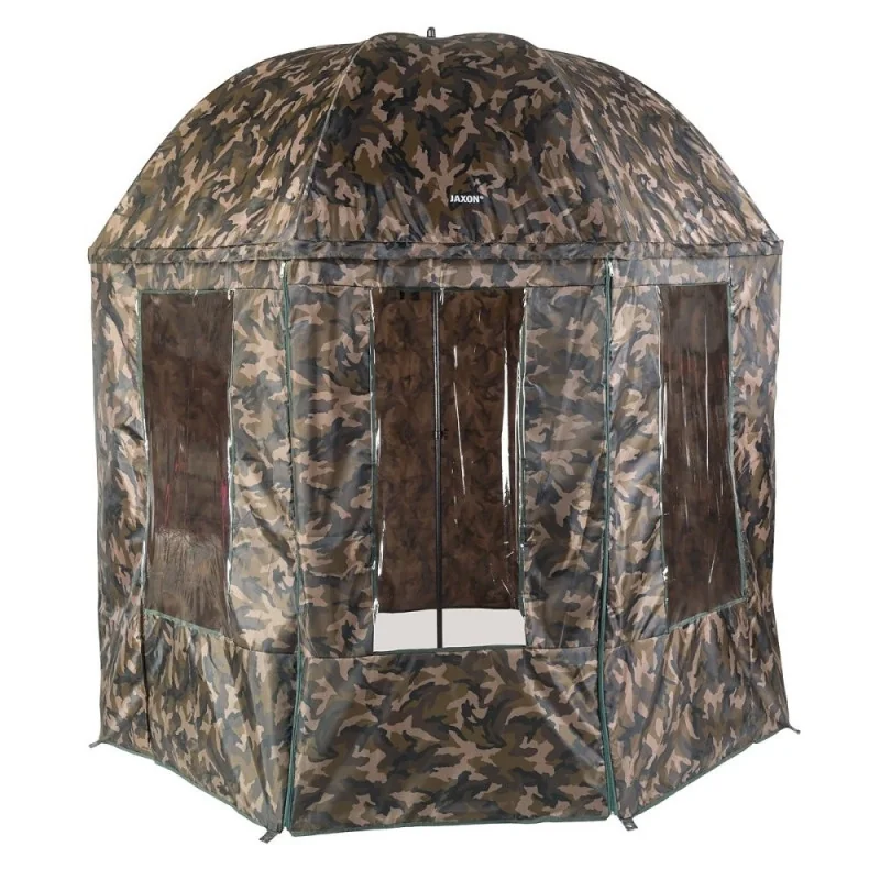 Parasol wędkarski z osłoną SAFARI 250VD to duży parasol z osłoną chroniącą przed deszczem i wiatrem. Parasol ma średnicę 250 cm, dzięki czemu zapewnia wystarczająco dużo miejsca, aby wędkarze mogli wygodnie zmieścić się pod nim.