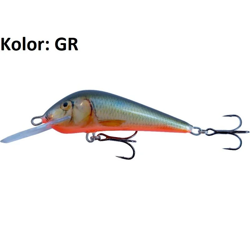 Trociowiec oparty na sprawdzonych kształtach z pomorskich rzek. Pracuje niesamowicie agresywnie. Bardzo szybko nurkuje do samego dna. Doskonale sprawdzi sie na keltowych prostkach na Słupi czy Wieprzy. Model 7 cm bardzo dobry jest zimą i wiosną. Mniejszy model dł 6 cm lepszy jest na letniego srebniaka przy niższych stanach rzek. Świetny na rzeczne i jeziorowe szczupaki przy zastosowaniu lżejszych zestawów. Szczególnie skuteczny jest w pochmurne ciemne dni w kolorze GT i RT. Model 5 cm jest doskonałą przynętą na pstrągi. Bardzo dobrze pracuje z prądem. Jest niezawodny na dużej nizinnej rzece w polowie kleni i brzan. Świetnie łowi sie na dynamica prowadząc go w dryfie, jego praca jest caly czas dobrze wyczuwalna.