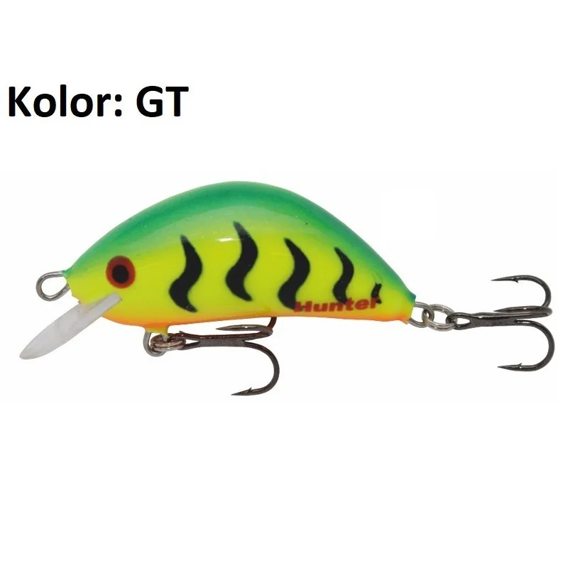 Wobler Hunter 3 cm stworzony do lekkiego spinningu do połowu na dużych rzekach. Pracuje bardzo płytko przez co jest idealnym przelewowcem. Największą jego zaletą jest odległość na jaką można go posłać dzięki jego zwartej grubej budowie. Hunter sprawdzi się na kleniach i jaziach żerujących na owadach w zalanych trawach. Hunter jest nową nadzieją jeśli chodzi o pstrągi. Wczesną wiosną polecamy większą piątkę do prowadzenia wolno z prądem i w poprzek rzeki.