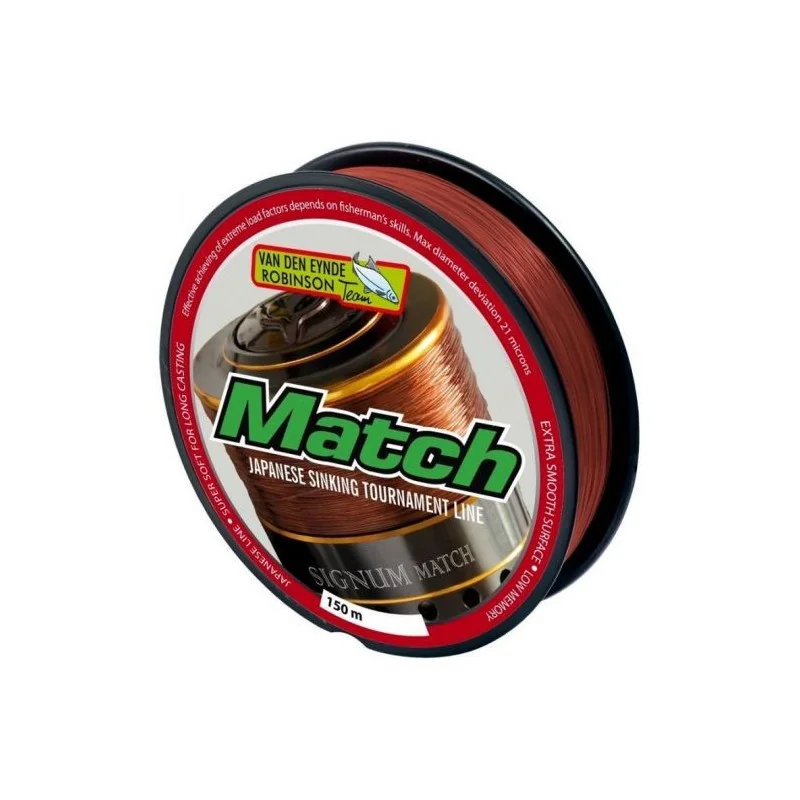 Żyłka Match to japoński model przeznaczony do połowów metodą odległościową. Jej wyjątkowa miękkość i gładka powierzchnia zapewniają dalekie i precyzyjne rzuty. Żyłka jest bardzo mocna, idealnie gładka, wykazuje brak pamięci, obniżoną rozciągliwość i odporność na szkodliwie działanie promieni UV.