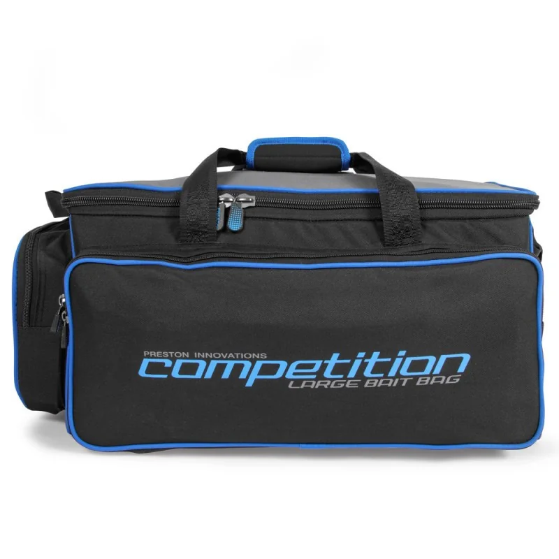 Torba COMPETITION Large Bait Bag jest idealna dla wędkarza, który lubi zabrać ze sobą na brzeg duży wybór przynęt, wyściółka termiczna pomoże utrzymać przynętę w doskonałym stanie przez cały dzień, podczas gdy mnóstwo mniejszych przedmiotów, dipów, bandaży itp. można przechowywać w obszernej kieszeni przedniej i bocznej.