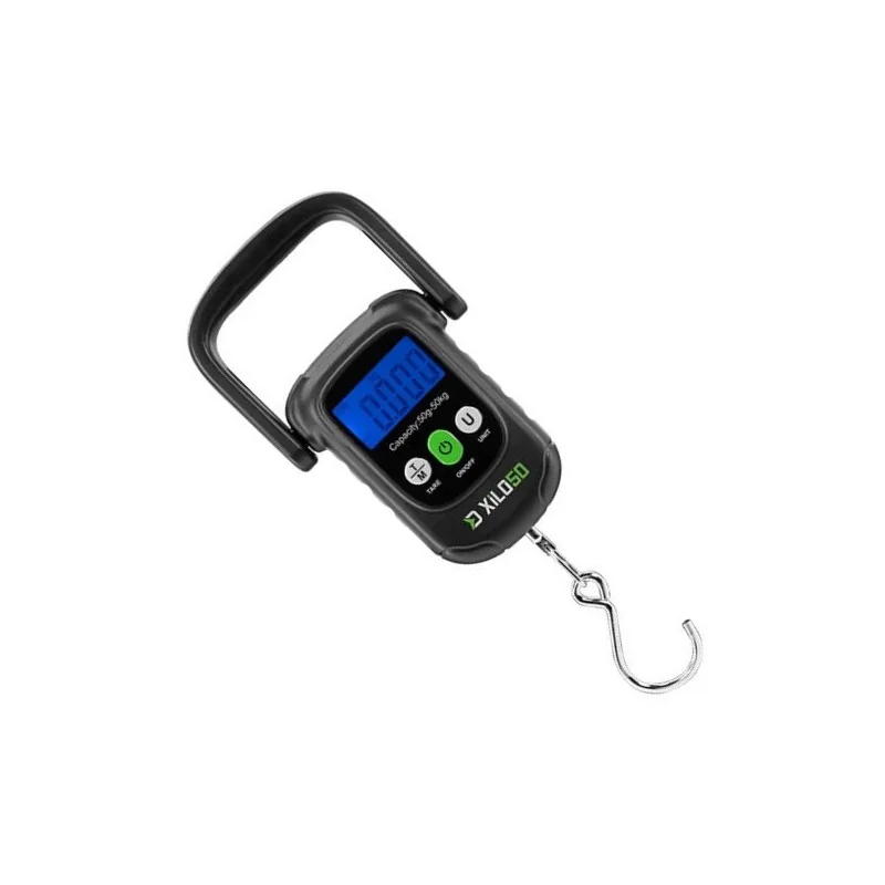 Waga cyfrowa XILO 50  do precyzyjnego pomiaru ciężaru od 50 g do 50 kg. XILO posiada trzy przyciski do prostego sterowania. Aby włączyć lub wyłączyć wagę, należy nacisnąć przycisk ON/OFF. Poprzez krótkie naciśnięcie przycisku U (UNIT) można zmieniać jednostki wagi (kg, lbs, JIN, oz) na wyświetlaczu. Funkcja TARE pozwala na założenie worka wagowego na hak, a naciśnięcie przycisku TARE spowoduje wyzerowanie wagi, która była już na wadze. Po włożeniu ryby do worka wagowego, na wyświetlaczu pojawi się tylko waga połowu.