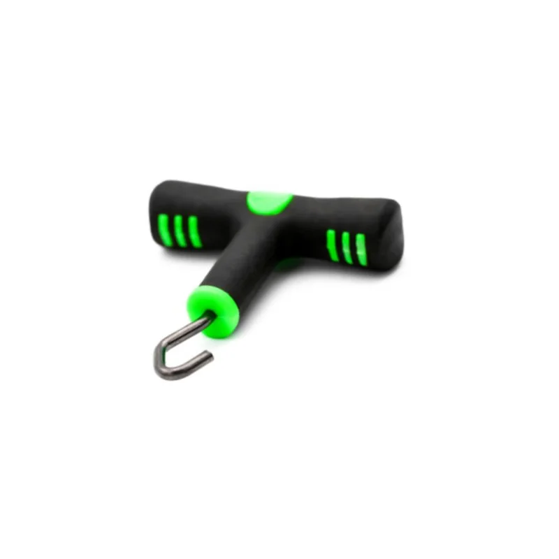 Zaciskacz do węzłów Pulla Tool to narzędzie Pulla ma wiele zastosowań, a najpopularniejszym sposobem jego użycia jest wiązanie węzłów. Konstrukcja w kształcie litery T sprawia, że bardzo łatwo jest go mocno chwycić i jest w stanie wywrzeć wystarczający nacisk, aby ułożyć węzły nawet na grubszych, sztywniejszych materiałach ogniw haczykowych, a także jest bardzo przydatny do prostego parowania ogniw haczykowych - zwłaszcza gdy używane są dwa, po jednym na każdym końcu ogniwa haczyka. Narzędzie Pulla posiada bardzo mocny hak ze stali nierdzewnej o średnicy 2 mm, który zmieści się w oczku krętlika w rozmiarze 8.