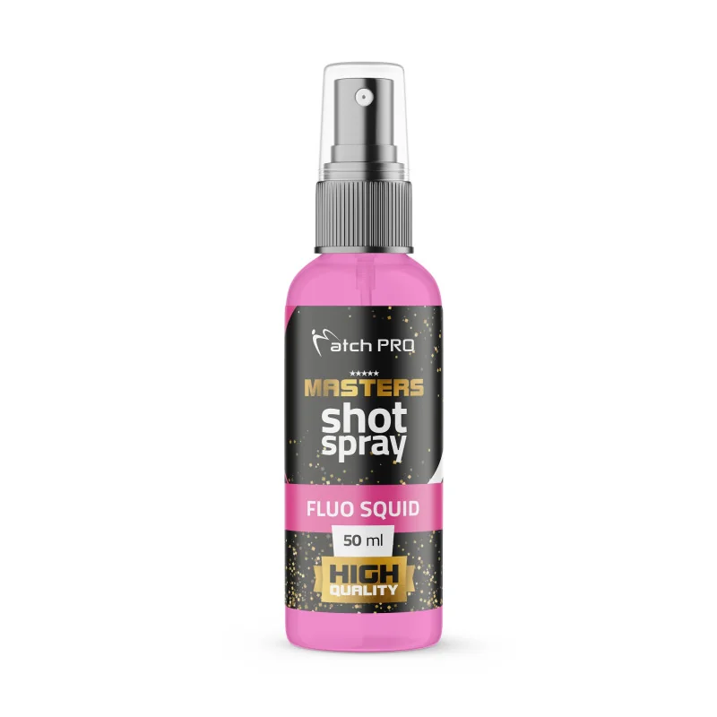 Najwyższej jakości zawodnicza seria atraktorów w sprayu. Bardzo mocno skondensowany naturalny aromat w 27 odmianach pozwala dopasować się do każdego łowiska i preferencji ryb w danym dniu. Masters Shot dedykowany jest do dopalenia koszyka zanętowego, kulek, zanęty, pelletu, przynęt oraz ziaren. Po użyciu tworzy powłokę aromatyczną, która utrzymuje się przez długi czas – wabiąc ryby. Masters Shot jest bardzo skuteczny, gdy chcemy złamać intensywne zapachy występujące w łowisku takie jak (rośliny, muł, małże itp.).