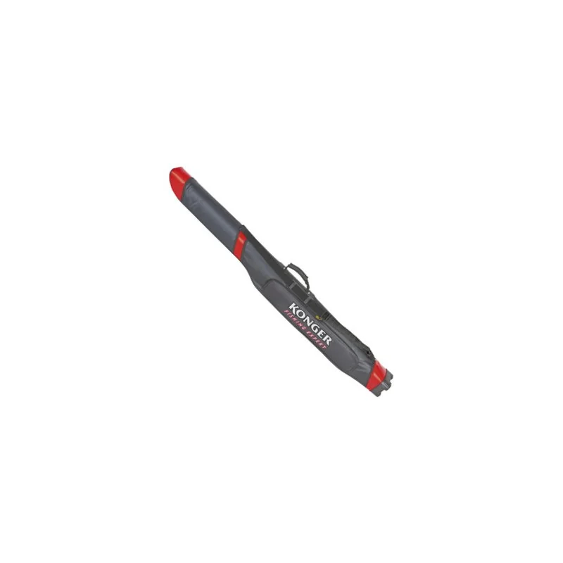 Futerał na wędki Carbon to usztywniony model dwukomorowy z plastikowym dnem. Wyposażony w kieszeń zewnętrzna na zamek, rączki do noszenia oraz pasek na ramię. Utrzymany w kolorach czerni z czerwonymi elementami i białym logo marki Konger.