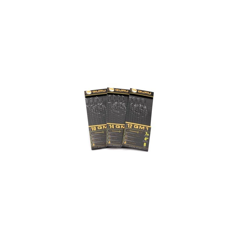 Przypony QM1 Speed Stop 4" to gotowe przypony Guru zbudowane na hakach QM1, żyłce N-Gauge zakończone gumką. Idealne do łowienia ziarnek kukurydzy lub mielonką.