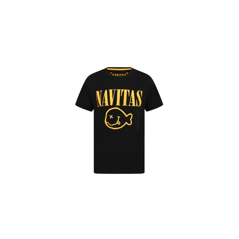 T-shirt Kurt Black zainspirowany kultową grafiką z uśmiechniętą buźką Nirvany i przerobiony na projekt karpiowatej ryby. Czarna koszulka o standardowym kroju wykończona nadrukiem na całej piersi i naszym charakterystycznym żółtym logo na ramieniu.