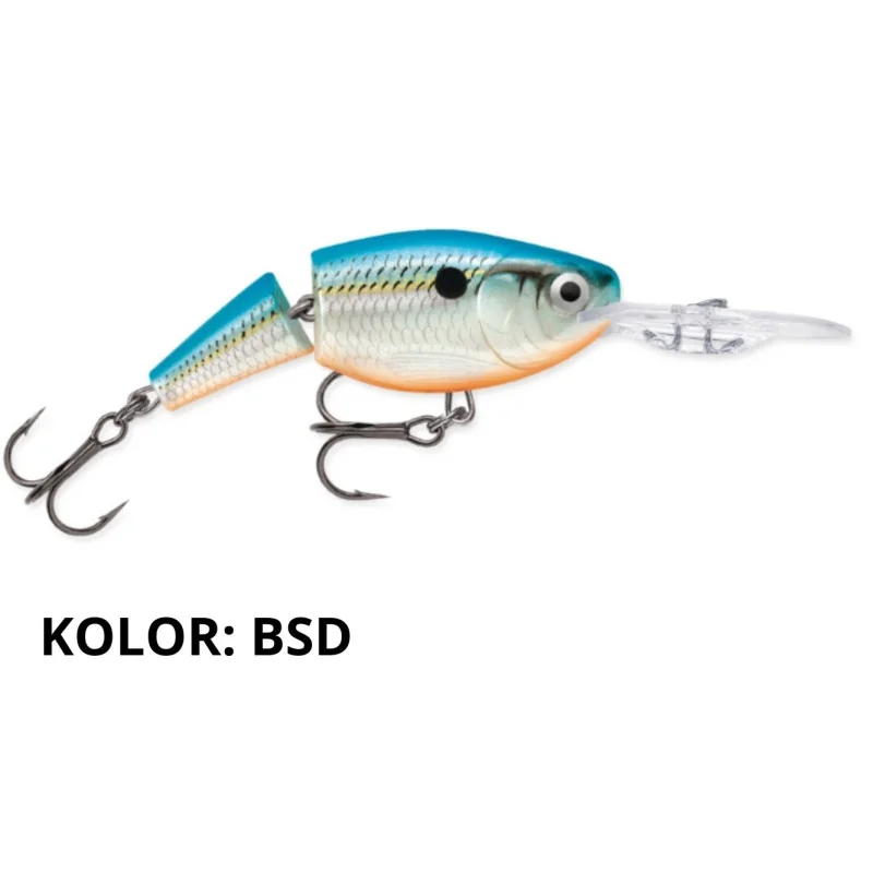 Wobler Jointed Shad Rap 7 cm Plastikowa, przegubowa wersja legendarnego Shad Rap®, która głośno i wyraźnie wysyła sygnał „zmartwionej płotki”. Jego przegubowa część ogonowa tworzy nieco przesadną akcję, która pomaga zwabić bezinteresowne lub nieśmiałe ryby.
