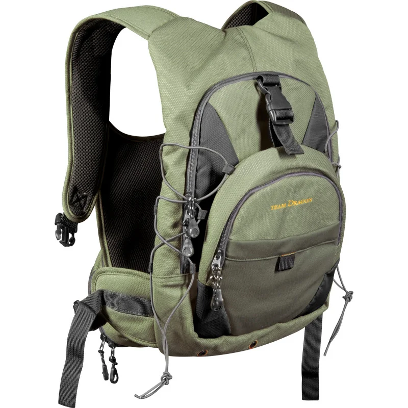 Bardzo praktyczne połączenie plecaka i kamizelki z możliwością odpięcia przedniej części. Sprawdzi się podczas brodzenia i spinningowania z brzegu. Wszystkie elementy mające kontakt ciałem zostały wyłożone gąbką i dzięki czemu Chest Pack jest bardzo wygodny, nawet przy znacznym obciążeniu sprzętem. Główna komora plecaka zmieści średnie pudełko spinningowe oraz napój i kanapki. Mniejsza kieszeń może być wykorzystana do przechowywania kołowrotka, zapasowych żyłek i przynęt. Pomiędzy kieszeniami znajdziemy miejsce na kurtkę i czapkę, zabezpieczone gumkami i zatrzaskiem.