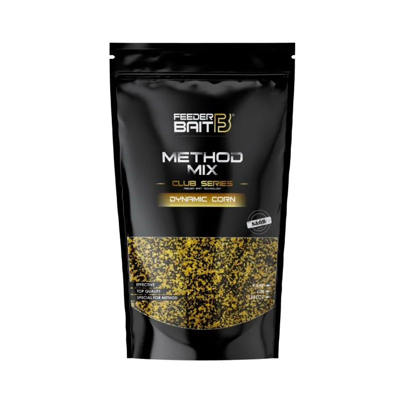 Zanęta Club Series Method Mix Dynamic Corn to starannie przygotowana mieszanka o grubej frakcji, która daje gwarancję przyciągania ryb na wysokim poziomie oraz utrzymania ławicy w polu łowienia. Ryby doskonale reagują na miękkie frakcje kukurydzy, które swoim kolorem wywołują mocny bodziec wzrokowy. Walory smakowe mieszanki podnosi pellet 2 mm w skład którego wchodzą białka zwierzęce. Mieszanka klubowa w skład której wchodzi wysoko białkowy pellet 2mm oraz kukurydza, której proces produkcji obejmował zmiękczanie, prasowanie, kruszenie oraz selekcję odpowiedniej frakcji.Mix po namoczeniu u odczekaniu 20 minut jest gotowy do łowienia. Doskonale układa się w podajniku, a w wodzie szybko pracuje. Na powstanie mieszanki klubowej miał wpływ cały klub Feeder Bait z Polski, Rumuni oraz Czech.