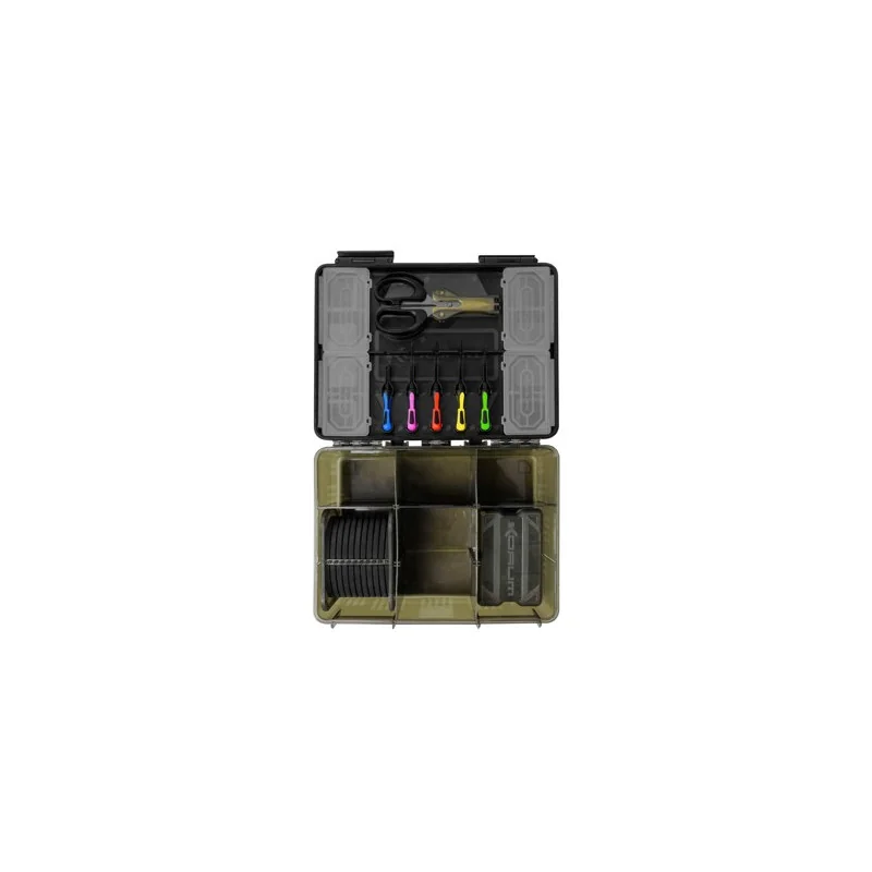 Pudełko Tackle Blox - Fully Loaded to nowa koncepcja przechowywania sprzętu skierowana bezpośrednio do wędkarzy wszechstronnych. Zaprojektowany, aby pomieścić wszystko, czego potrzebujesz w jednym, dobrze zorganizowanym miejscu. Starannie dobrany rozmiar BLOX'a, aby pomieścić niezbędne elementy sprzętu końcowego, takie jak szpule żyłki, paczki haczyków i akcesoria. Jeśli wolisz przegródki, możesz użyć dedykowanego BITS BLOX, a także umieścić sprzęt końcowy w pokrywie pudełka. Twoje narzędzia do nęcenia i nożyczki są starannie zamocowane na swoim miejscu, a główne pudełko można dostosować za pomocą przegródek do własnych potrzeb. Jeśli chcesz, możesz także umieścić w nim RIG BLOX, chroniąc wszystkie wcześniej zawiązane przypony przed trudnymi warunkami atmosferycznymi. To jedno pudełko, które pomieści wszystko co niezbędne!