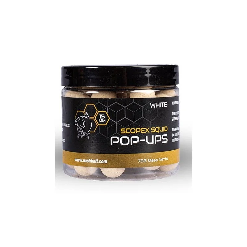 Kulki Scopex Squid Pop Ups White 2024 to wyjątkowo wyporne, przyjazne dla igieł pop-upy z podwyższonym poziomem dodatku Scopex No.1, oleju z czerwonej wątroby, słodzika i ekskluzywnego Squid Extractu. Zaprojektowane, aby zapewnić skuteczną prezentację przyponów Ronnie, Chod i Stiff Rig przez 24–48 godzin.