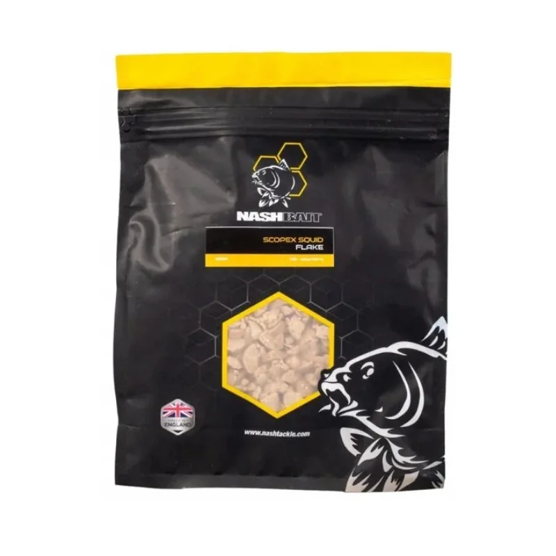 Płatki proteinowe Scopex Squid Flake 2024 to jedna z oryginalnych przynęt od Kevina Nasha dedykowana łowieniu dużych karpi, jest produkowana z całych kulek proteinowych, po ich ugotowaniu, dokładnie w taki sam sposób, jak pełne kulki zanętowe. Następnie przechodzą one przez maszynę tnącą, która tworzy dwa odrębne elementy – duży procent posiekanych, nieregularnych plastrów i fragmentów kulek proteinowych oraz drobno zmielone okruchy, które doskonale tworzą chmurę zanętową, rozprowadzającą smak i zapach w obrębie łowiska.