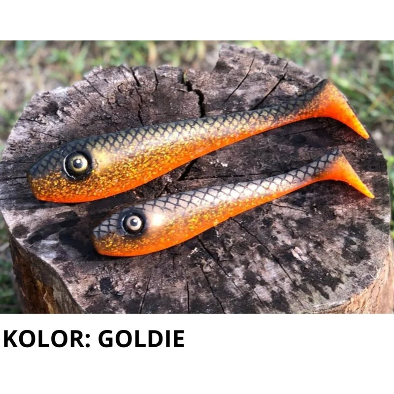 Nietypowo ostro wyprofilowany brzuszek powoduje, że guma kusząco kolebie się na boki. Duża płetwą wytwarza silną falę hydroakustyczną nawet przy ekstremalnie wolnym prowadzeniu.