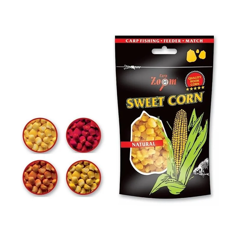 Selekcjonowana kukurydza haczykowa zapakowana w bardzo wygodne torebki strunowe. Po pierwszym otwarciu opakowania można ją ponownie zamknąć i zabezpieczyć przed wysychaniem. Kukurydzę Sweet Corn polecamy również jako przynętę w metodzie włosowej. Występuje w 4 klasycznych zapachach, w opakowaniach 150 g.
