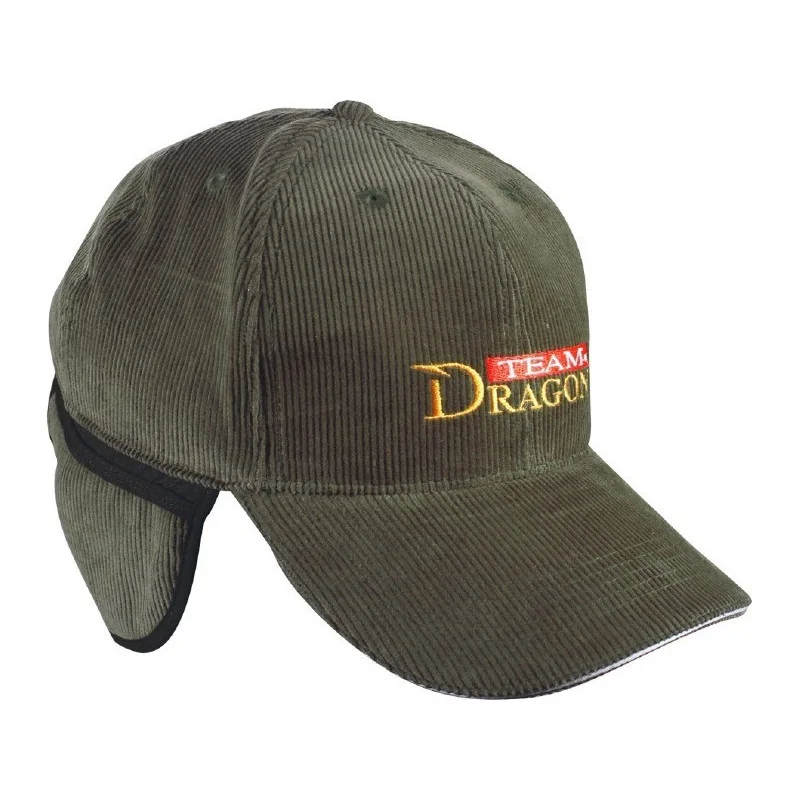 Czapka Dragon zimowa Baseball z nausznikami - zielony sztruks