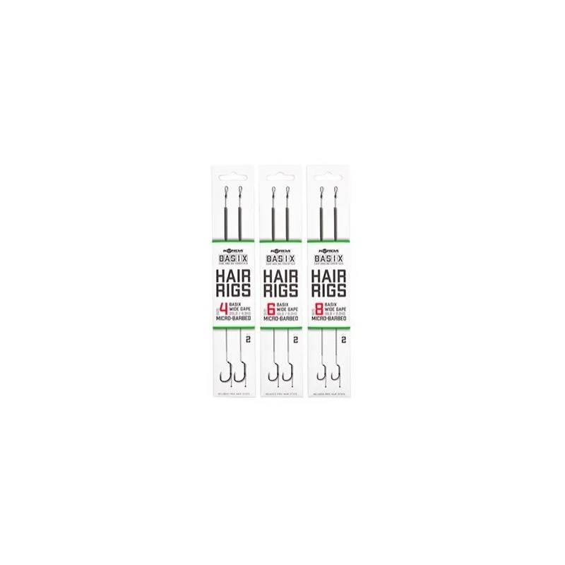 Przypon karpiowy Basix Hair Rig Wide Gape do włosów Basix są gotowe do użycia zaraz po wyjęciu z opakowania, a wszystko, co musisz zrobić, to dodać do nich przynętę tonącą lub przynętę i gotowe! Przypony te są wiązane za pomocą materiału Basix Coated Hooklink w kolorze camo green, z niewielką częścią odartą z tyłu przez haczyk Basix Wide Gape, aby umożliwić ruch i zwiększyć potencjał zacięcia. Mają miękkie włosie z kawałkiem silikonu, który utrzymuje go na trzonku i pomaga zapobiegać splątaniu, a długość tego włosia została zoptymalizowana pod kątem rozmiarów przynęty pasujących do wybranego rozmiaru haczyka — rozmiar 8 jest przeznaczony do przynęt haczykowych 12mm, 15mm przy rozmiarze 6, i 18 mm w rozmiarze 4.