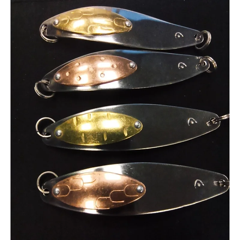 Klasyczna błystka wahadłowa Rewa nakładka. Najbardziej ceniona błystka na Pomorzu, dzięki dodatkowej nakładce nie ma sobie równych przy połowie w trollingu. Błystka wykonana w 100% ręcznie przez Pana Adama Kaczmarka. Uwaga błystki mogą różnić się kolorystycznie !!!