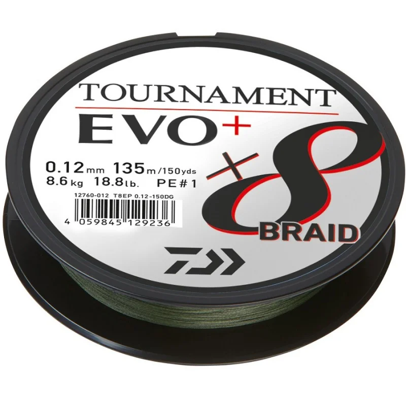 Popularna plecionka Tournament 8 Braid w udoskonalonym wydaniu EVO+. Powłoka powerzchni zyskała większą zawartość silikonu, dzięki czemu generuje jeszcze mniejsze tarcie przy wyrzucie zwiększając osiągane odległości. Dodatkowo zredukowane zostały dźwięki powstające przy przechodzeniu przez przelotki. Nowa Tournament X8 Braid EVO+ technologicznie zalicza się do najbardziej zaawansowanych plecionek dostępnych na światowym rynku. Evo+ nie strzępi się nawet przy częstym i intensywnym użytkowaniu zachowując okrągły splot. W nowych opakowaniach zmniejszyliśmy udział tworzyw sztucznych o 50%.