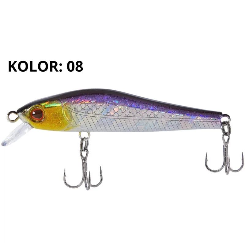 Wobler Select Drastic 56SP to niewielka przynęta imitująca małą rybkę, która pomoże Ci złowić prawie wszystkie nasze drapieżniki: okonie, szczupaki, bolenie, klenie, jazie, a nawet pstrągi. Pracuje stabilnie zarówno w wodzie stojącej, jak i przy umiarkowanym rzecznym nurcie, przynosząc raz po raz brania ryb. Raczej nie złowisz na nią największych okazów, ale jeżeli chodzi o ilość brań, to Drastic da Ci ich na pewno wyjątkowo dużo. Drastic 56SP ma swoją wyraźną własną pracę, dzięki czemu dobrze prowokuje ryby do brań nawet przy równomiernym prowadzeniu. Niemniej jednak najskuteczniejszą animacją dla tego typu woblerów jest twitching. Podczas podszarpnięć Drastic imituje zraniony narybek, a w przerwach, kołysząc się, zawisa w toni, to właśnie w tym momencie najczęściej następuje atak drapieżnika. Wobler wyposażony jest w magnetyczny system rzutowy, składający się z cylindra poruszającego się wzdłuż metalowej osi. Dzięki temu, pomimo niewielkiej masy, można go precyzyjnie i daleko zarzucać przy pomocy finezyjnych wędzisk. Różnorodność kolorów Select Drastic 56SP pozwala wybrać idealny wobler na każde warunki i każdego drapieżnika.