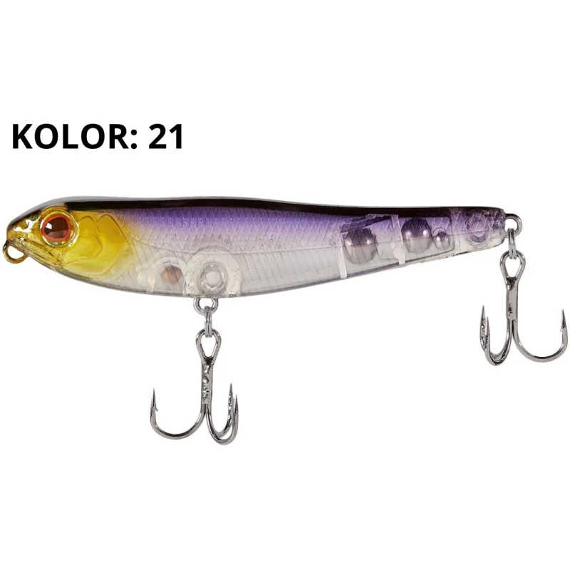 Wobler Select Flash 70F - niewielki, klasyczny walker do łowienia okonia i bolenia. Jest bardzo prosty w animacji - podczas szarpnięć łatwo porusza się z boku na bok, rysując zygzaki na powierzchni wody. W zależności od ich prędkości i intensywności wobler będzie albo leniwie się obracać i robić szerokie zakręty (średnia prędkość prowadzenia i szerokie szarpnięcia), albo wykonywać bardzo ostre skręty niemal w miejscu (krótkie i szybkie szarpnięcia). Ta przynęta jest najbardziej skuteczna w okresach ciepłej wody, kiedy drapieżniki często polują na powierzchni. Może to być zarówno stadny okoń lub boleń w pobliżu płycizn i prądów, jak i szczupak na dużych płyciznach.