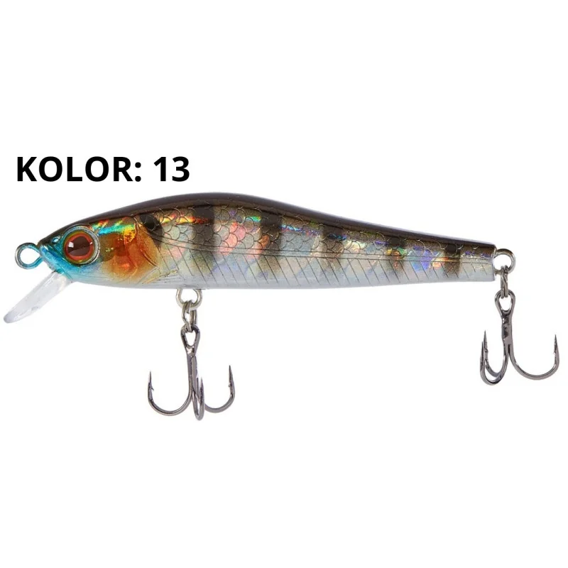 Wobler Select Drastic 56SP to niewielka przynęta imitująca małą rybkę, która pomoże Ci złowić prawie wszystkie nasze drapieżniki: okonie, szczupaki, bolenie, klenie, jazie, a nawet pstrągi. Pracuje stabilnie zarówno w wodzie stojącej, jak i przy umiarkowanym rzecznym nurcie, przynosząc raz po raz brania ryb. Raczej nie złowisz na nią największych okazów, ale jeżeli chodzi o ilość brań, to Drastic da Ci ich na pewno wyjątkowo dużo. Drastic 56SP ma swoją wyraźną własną pracę, dzięki czemu dobrze prowokuje ryby do brań nawet przy równomiernym prowadzeniu. Niemniej jednak najskuteczniejszą animacją dla tego typu woblerów jest twitching. Podczas podszarpnięć Drastic imituje zraniony narybek, a w przerwach, kołysząc się, zawisa w toni, to właśnie w tym momencie najczęściej następuje atak drapieżnika. Wobler wyposażony jest w magnetyczny system rzutowy, składający się z cylindra poruszającego się wzdłuż metalowej osi. Dzięki temu, pomimo niewielkiej masy, można go precyzyjnie i daleko zarzucać przy pomocy finezyjnych wędzisk. Różnorodność kolorów Select Drastic 56SP pozwala wybrać idealny wobler na każde warunki i każdego drapieżnika.