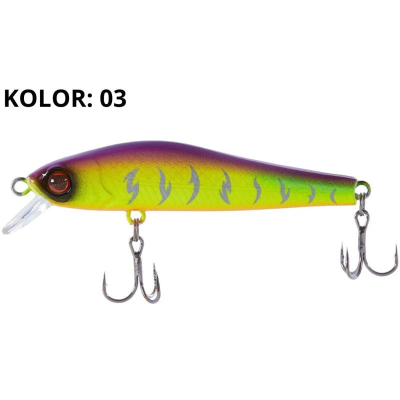 Wobler Select Drastic 56SP to niewielka przynęta imitująca małą rybkę, która pomoże Ci złowić prawie wszystkie nasze drapieżniki: okonie, szczupaki, bolenie, klenie, jazie, a nawet pstrągi. Pracuje stabilnie zarówno w wodzie stojącej, jak i przy umiarkowanym rzecznym nurcie, przynosząc raz po raz brania ryb. Raczej nie złowisz na nią największych okazów, ale jeżeli chodzi o ilość brań, to Drastic da Ci ich na pewno wyjątkowo dużo. Drastic 56SP ma swoją wyraźną własną pracę, dzięki czemu dobrze prowokuje ryby do brań nawet przy równomiernym prowadzeniu. Niemniej jednak najskuteczniejszą animacją dla tego typu woblerów jest twitching. Podczas podszarpnięć Drastic imituje zraniony narybek, a w przerwach, kołysząc się, zawisa w toni, to właśnie w tym momencie najczęściej następuje atak drapieżnika. Wobler wyposażony jest w magnetyczny system rzutowy, składający się z cylindra poruszającego się wzdłuż metalowej osi. Dzięki temu, pomimo niewielkiej masy, można go precyzyjnie i daleko zarzucać przy pomocy finezyjnych wędzisk. Różnorodność kolorów Select Drastic 56SP pozwala wybrać idealny wobler na każde warunki i każdego drapieżnika.