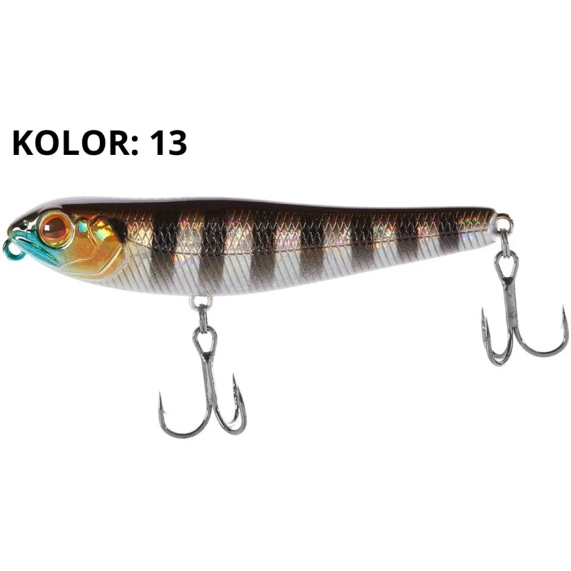Wobler Select Flash 70F - niewielki, klasyczny walker do łowienia okonia i bolenia. Jest bardzo prosty w animacji - podczas szarpnięć łatwo porusza się z boku na bok, rysując zygzaki na powierzchni wody. W zależności od ich prędkości i intensywności wobler będzie albo leniwie się obracać i robić szerokie zakręty (średnia prędkość prowadzenia i szerokie szarpnięcia), albo wykonywać bardzo ostre skręty niemal w miejscu (krótkie i szybkie szarpnięcia). Ta przynęta jest najbardziej skuteczna w okresach ciepłej wody, kiedy drapieżniki często polują na powierzchni. Może to być zarówno stadny okoń lub boleń w pobliżu płycizn i prądów, jak i szczupak na dużych płyciznach.
