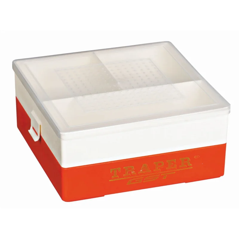 Specjalistyczne pudełka do przynęt. W komplecie z pojemnikiem znajdują się dwa wkłady do zamrażania. Umieszczone w dolnej części pudełka zamrożone wkłady zapewniają optymalnie niską temperaturę przynęt haczykowych w czasie upałów.