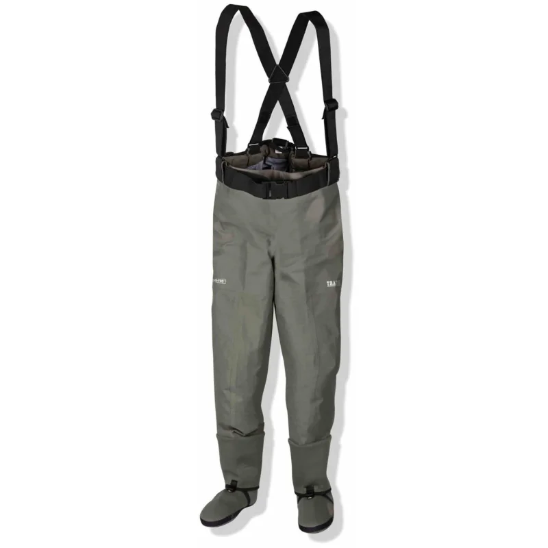 Wykonane z japońskiego, pięciowarstwowego materiału HYDROTEC. Profilowane nogawki bez wewnętrznych szwów, zapewniają wygodę w czasie brodzenia oraz zwiększają trwałość. Gruby, pięciomilimetrowy neopren firmy 3M o dużej gęstości zastosowany w skarpetach o anatomicznym kształcie jest odporny na przetarcia i uszkodzenia na łączach. Górna część jest wykończona szerokim, regulowanym i wygodnym pasem. Każda para woderów jest indywidualnie testowana.