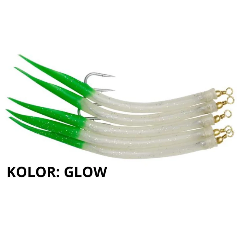 Klasyczny zestaw do połowu dorsza/mintaja/czarniaka . Złożona z silikonowej rurki i haków stalowych Perma.