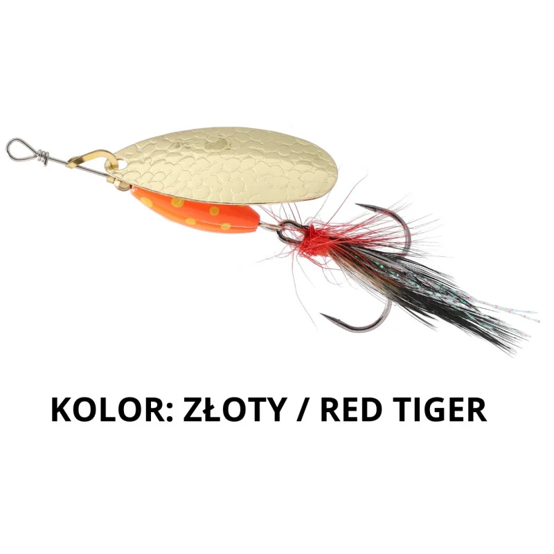 Błystka obrotowa o szerokiej paletce oraz cięzkim, malowanym korpusie, dzięki któremu możemy obłowić nagłębsze miejsca w rzece oraz podwodne górki. Dodatkowy chwost na kotwiczce podnosi atrakcyjność oraz zwiększa skuteczność zacięcia.