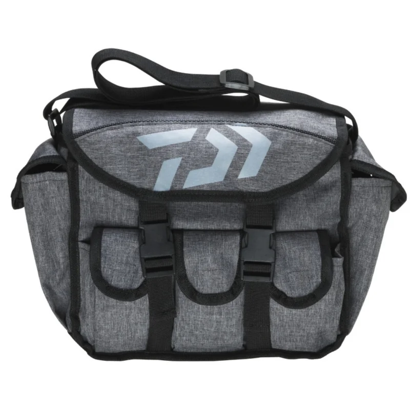 Główna komora (30x15cm) oferuje miejsce na maksymalnie 3 pudełka na sprzęt itp. Trzy małe kieszenie z przodu (12x8cm) z łatwością pomieszczą akcesoria, takie jak noże, szczypce itp. Dwie kieszenie boczne (17x13cm) z łatwością pomieszczą różne drobiazgi, takie jak telefon komórkowy, dokumenty wędkarskie itp. Wysokiej jakości materiał poliestrowy w szarym kolorze jest łatwy do czyszczenia i posiada właściwości hydrofobowe, które zapobiegają szybkiemu przemakaniu podczas krótkich opadów deszczu. Gumowane, wodoodporne dno zapobiega przemakaniu z mokrego podłoża. Zawiera regulowany pasek na ramię. Wewnętrzna komora jest wyłożona PVC i można ją łatwo wyczyścić.