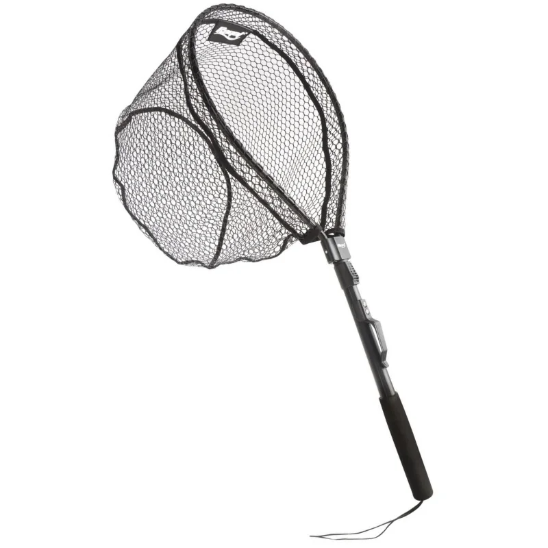 Podbierak spinningowy. Bez magnesu, bez karabińczyka, gumowa siatka, klips do paska, rzemień.