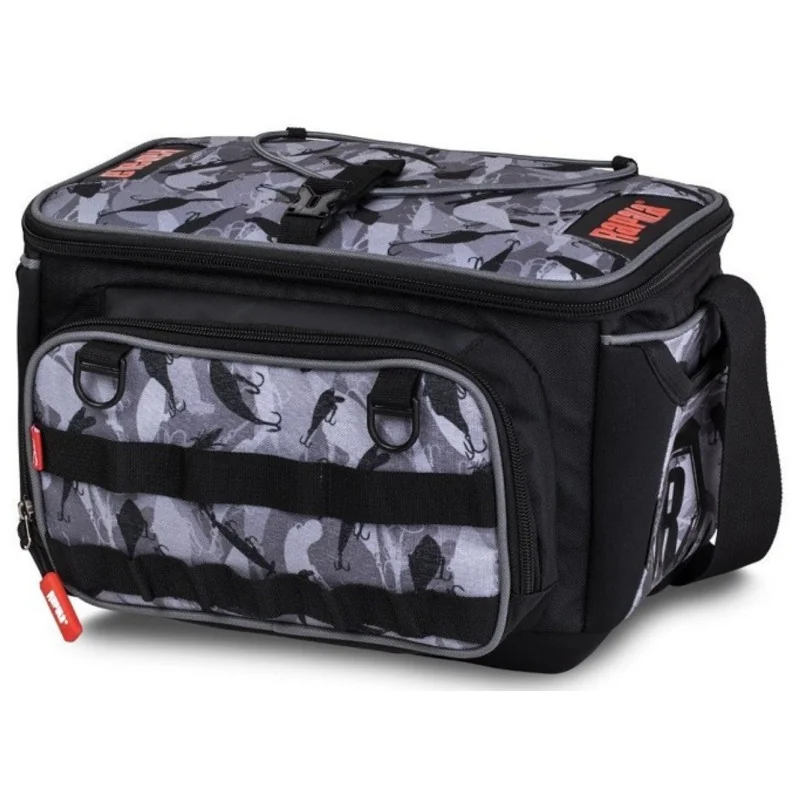 Torba wędkarska Lurecamo Lite pomieści cztery pudełka wędkarskie typu 3600 (nie są w komplecie). Wyściełany, regulowany pasek na ramię. Twarde, wyprofilowane i wodoodporne dno z wytłoczonym logotypem Rapala®. Wodoodporny materiał z nadrukiem Rapala LureCamo. Wieczko służy jako podręczny stolik. Przednia kieszeń wyposażona w zaczepy na akcesoria oraz w wielokieszeniowy organizer. Przezroczysta kieszeń zapinana na suwak w pokrywie. Panele neoprenowe na bocznych kieszeniach zapewniają dodatkową przestrzeń do pakowania. Suwaki typu YKK.