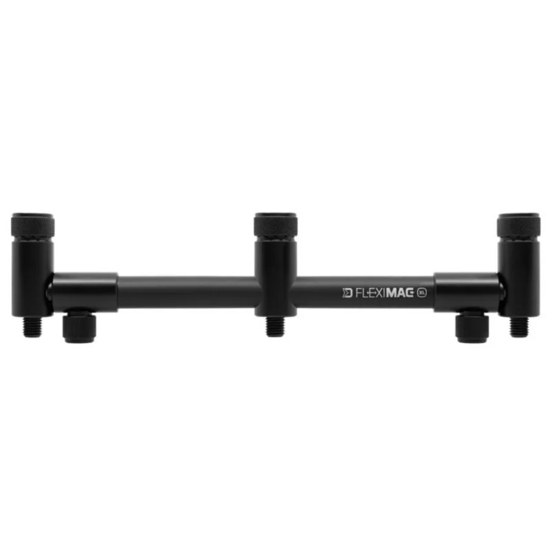Ramiona są ścięte płasko na dole, więc po dokręceniu śruby blokującej trzymają się na miejscu i nie obracają się. FlexiMAG BUZZ jest wykonany z wytrzymałego aluminium z czarną trwałą powłoką. Jest dostępny w dwóch rozmiarach: L (krótszy) na dwie wędki i XL (dłuższy) na trzy wędki.