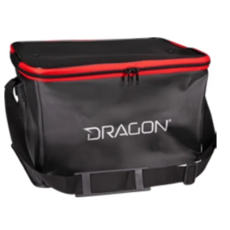 Wodoodporne pojemniki Dragon pozwalają zabezpieczyć narażone na zamoczenie rzeczy na łodzi, na plaży czy na gruntowej zasiadce. Wykonane są z mocnego, całkowicie nieprzemakalnego materiału PVC. Największy (L) posiada wzmocnione, całkowicie sztywne ścianki i solidną pokrywę. Wewnątrz dodatkowe wyposażenie stanowi plastikowa półka z przegródkami. Pojemnik bardzo łatwo umyć, żaden rodzaj zabrudzeń nie przylega do jego ścianek. Olbrzymią zaletą takiego pojemnika jest możliwość postawienia go na dnie łodzi, kiedy zbierze się w niej woda przy ulewnym deszczu. W takiej sytuacji dno pojemnika w 100% zabezpiecza przed zamoknięciem schowane w nim rzeczy. Dwa mniejsze mają prostą konstrukcję, bez dodatkowych elementów wewnątrz, a ich ścianki pozwalają na składanie pojemników na czas, kiedy nie są używane.