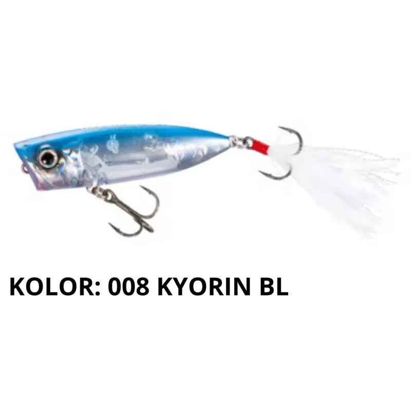 Shimano Bantam World Pop 69F to klasyczny popper średnich rozmiarów, wyposażony w opatentowane technologie Shimano: FLASH BOOST oraz SCALE BOOST, które dodatkowo oddziaływają na zmysły drapieżników, prowokując je do brania. Dzięki technologii FLASH BOOST, wykorzystującej system podwieszonego lusterka, połączony z częściowo transparentnym korpusem, Bantam World Pop oddziałuje nie tylko na linię boczną ryby, ale również na jej dobrze wyostrzony zmysł wzroku. Z każdym podciągnięciem, wobler rozświetla powierzchnię wody, prowokując drapieżniki do ataku. Nawet podczas pauzy w prowadzeniu, pulsacyjne światło rozchodzi się po powierzchni, aktywując ryby ustawione kilka metrów poniżej. Łowienie na poppery to świetna zabawa, a widok mocno sprowokowanego drapieżnika chwytającego naszą przynętę niejednokrotnie potrafi podnieść ciśnienie. Ponadto, łowienie na poppery to często jedyne słuszne rozwiązanie na mocno zarośniętych łowiskach, gdzie klasycznych woblerów i miękkich przynęt po prostu nie zdołamy poprowadzić. Jako lider w tym segmencie przynęt, Shimano Bantam World Pop cechuje się powtarzalną pracą i głośnym, niskim, charakterystyczym dźwiękiem imitującym żerującego przy powierzchni okonia. To zdecydowany numer 1 na letnie łowienie okoni oraz boleni.
